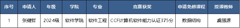 欧洲足球联赛 于2025年10月开展了程序设计类竞赛获奖学生申请课程免修工作,根据学生申请,经欧洲足球联赛 竞赛指导教师免修工作小组专题讨论,教学委员会通过,课程免修结果如下: