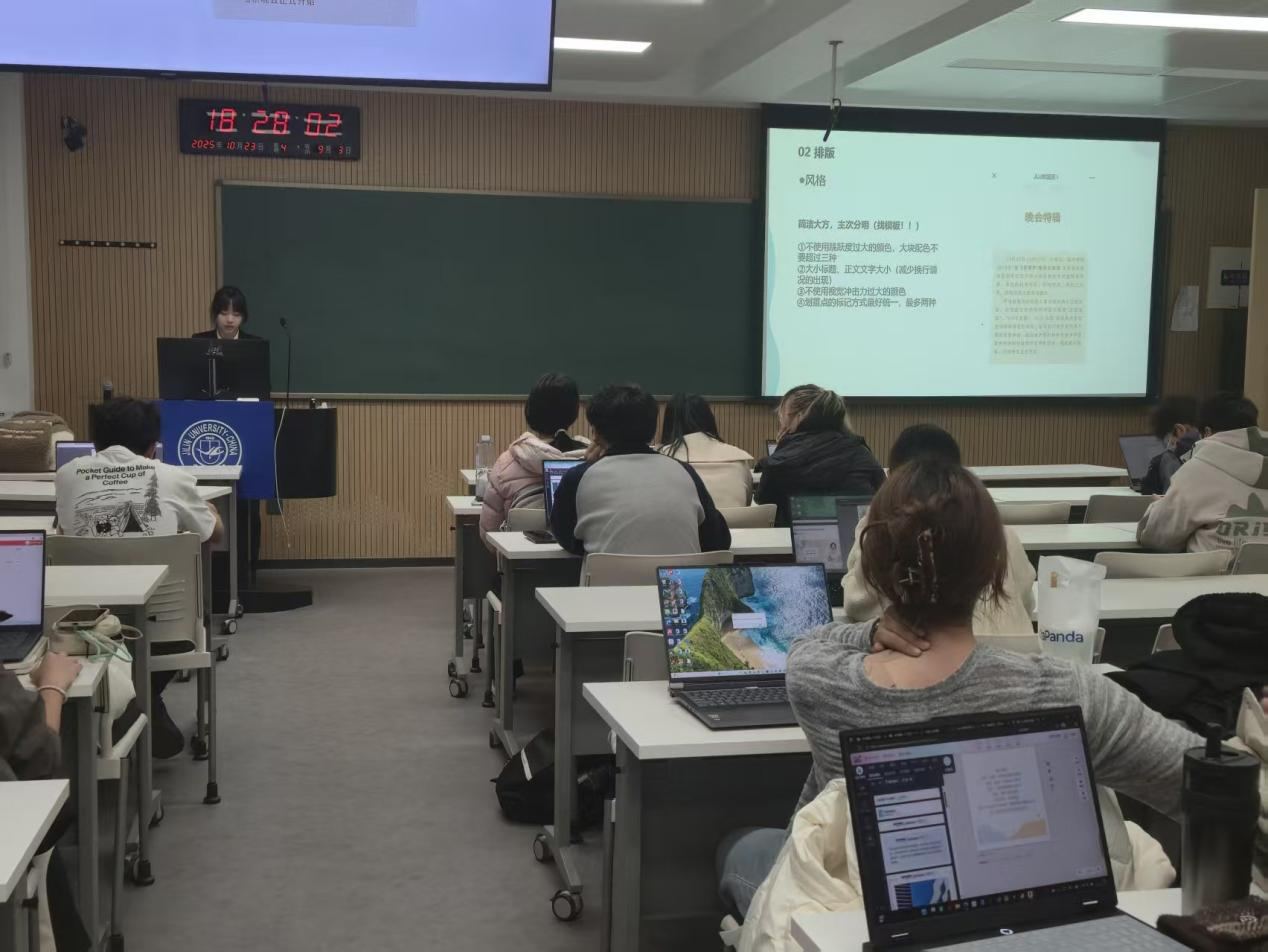 团委网络信息部在敬信教学楼E103教室开展公众号推送培训活动。本次培训由院团委副书记闫芳菲担任主讲人,30余名团学成员参与。