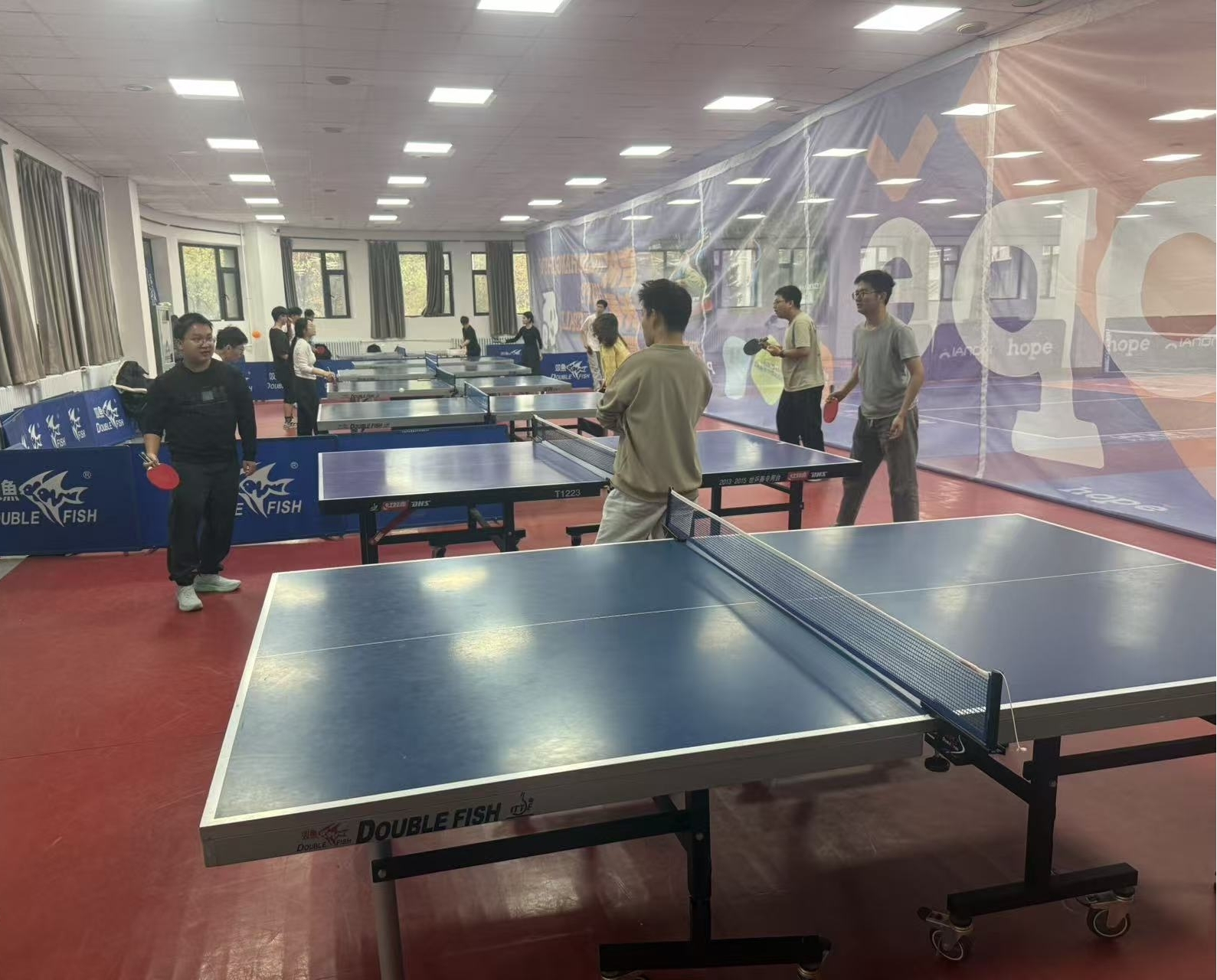 前卫南区老体育馆乒乓球馆内气氛热烈而温馨,由欧洲足球联赛