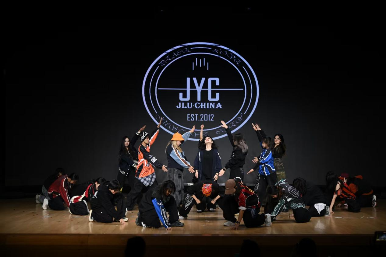 当日上午八时,演职人员提前抵达会场进行设备调试与节目彩排,各项工作紧张有序推进。九时,全流程预演开始,主持人与中控团队、参演人员密切配合,反复打磨细节,确保演出顺利呈现。下午一时,周年庆表演如期拉开帷幕,整场演出涵盖20支舞蹈作品与2首说唱表演,节目形式丰富多元,包括大齐舞、小齐舞、cover及old school等舞种展示。同时本次活动特别邀请了JLUHIPHOP社嘉宾到场助演,为现场观众带来别样精彩。